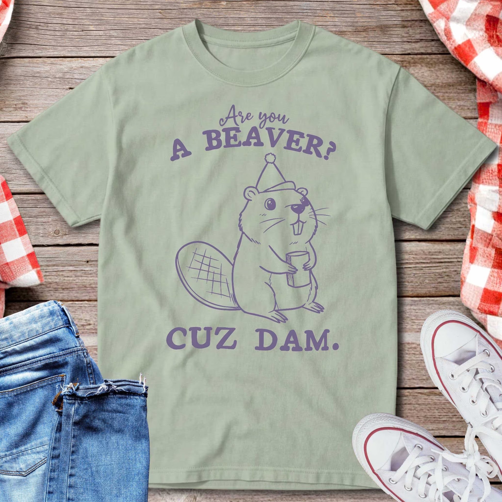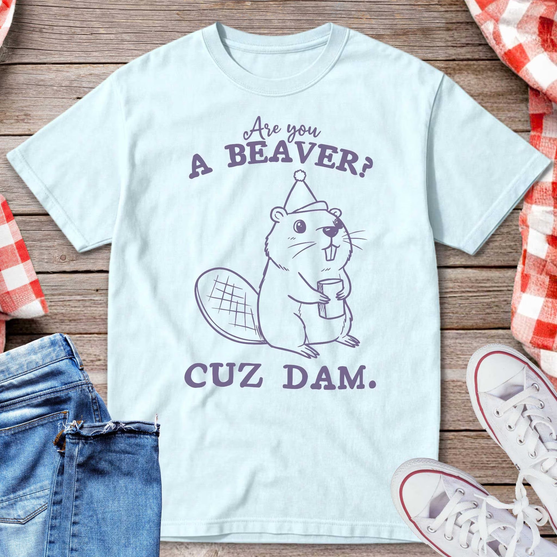 Bring the laughs with this clever graphic tee that’s sure to turn heads. Featuring a playful beaver illustration in a party hat with the cheeky pickup line “Are You A Beaver? Cuz Dam,” this shirt is equal parts cute and hilarious. Soft, comfy, and perfect for everyday wear, it’s the ultimate conversation starter for anyone with a witty sense of humor.