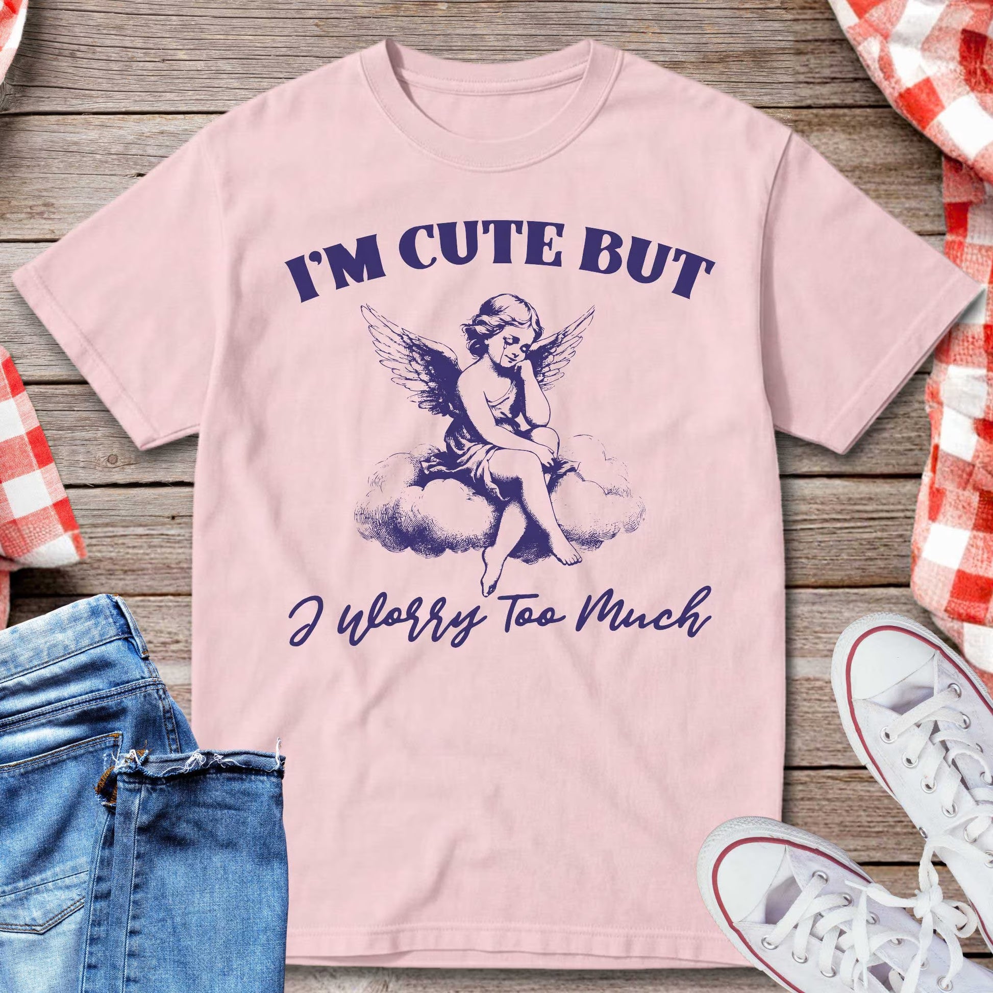 Sweet yet relatable, this t-shirt features an angel sitting on a cloud with the phrase “I’m Cute But I Worry Too Much.” Perfect for anyone who knows they’re adorable but can’t help overthinking everything, this tee is equal parts charming and funny. Soft, casual, and full of personality, it’s an everyday reminder that being cute and anxious is a whole vibe worth showing off.