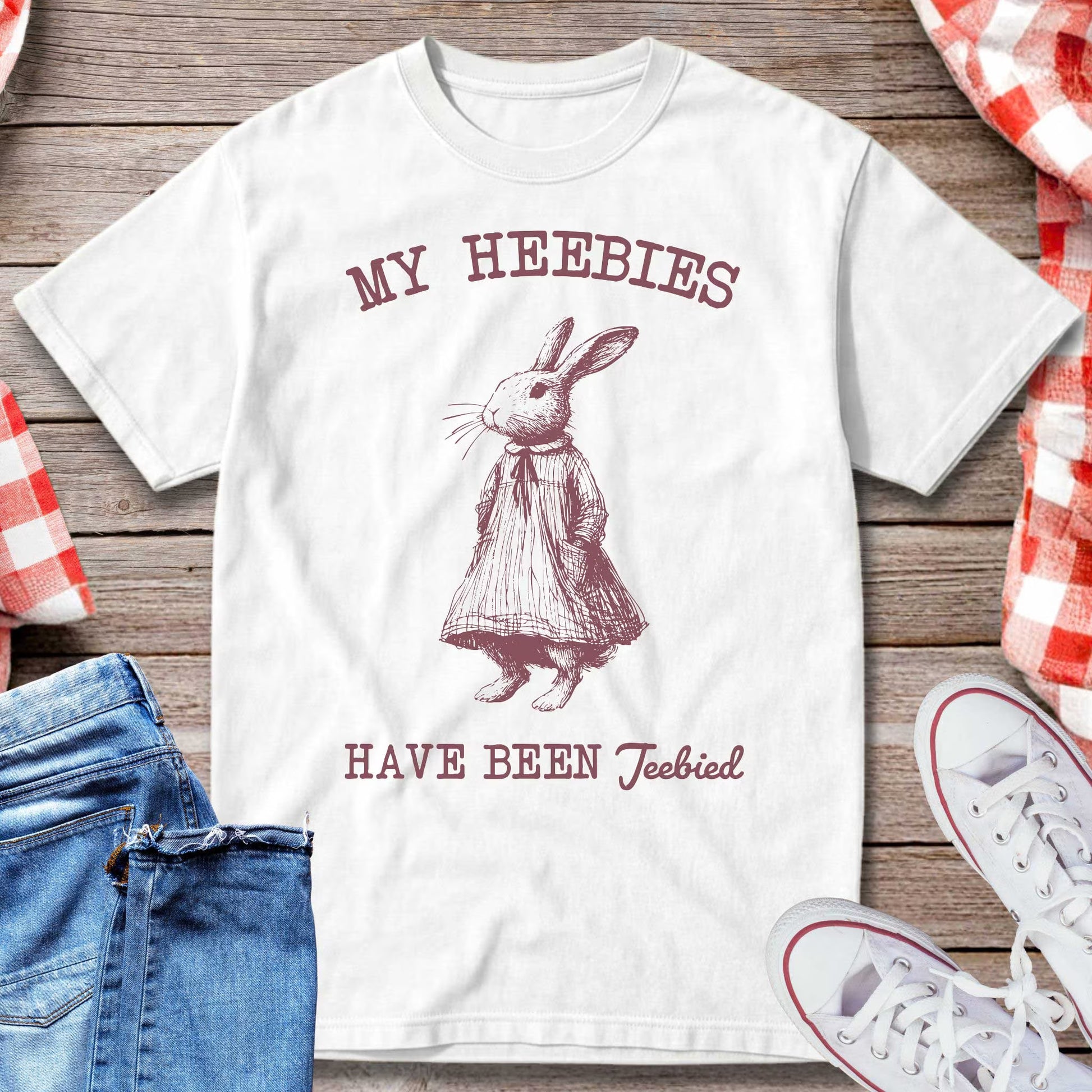 Creepy-cute and irresistibly funny, this t-shirt delivers vintage vibes with a rabbit in a dress and the phrase: “My heebies have been jeebied.” It’s the perfect blend of spooky humor and quirky charm, making it a standout tee for everyday wear, lounging, or gifting to anyone who appreciates offbeat, witty style.