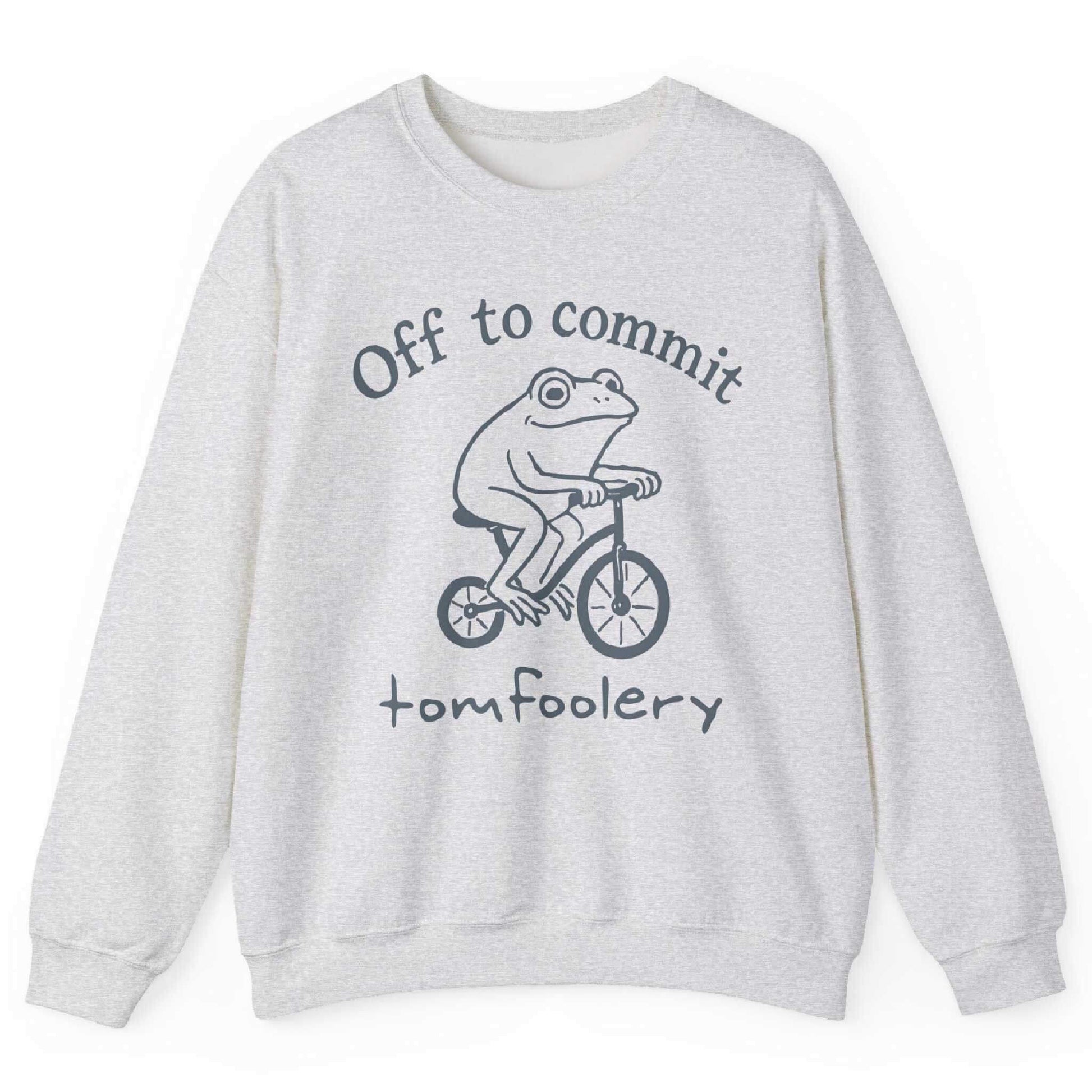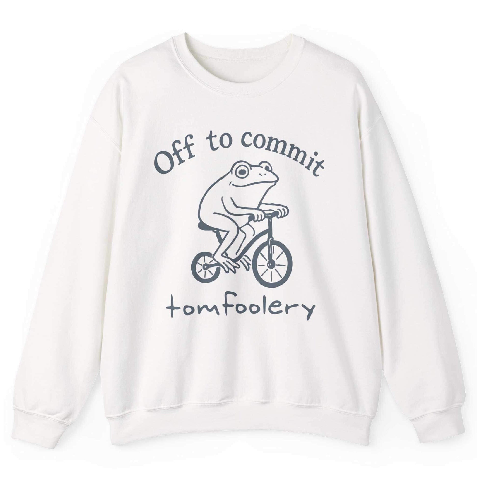 Perfect for the mischief makers and chaos lovers, this sweatshirt brings the laughs with its bold design. Featuring a straight-faced frog riding a tiny bicycle and the phrase “Off to Commit Tomfoolery,” it’s the ultimate statement piece for anyone who thrives on playful antics. Soft, cozy, and cheekily rebellious—wear it when you’re up to no good (or just want people to think you are).
